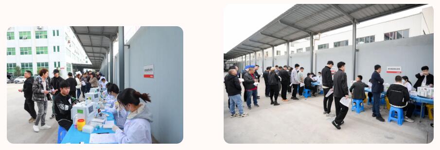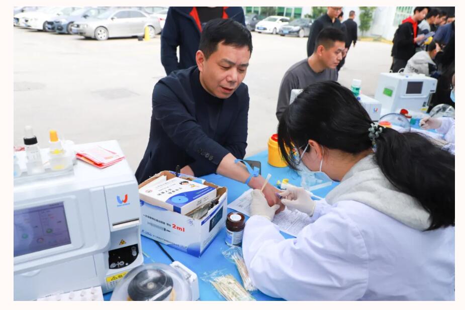 在經過血壓測量、血樣化驗等一系列必要流程后,符合獻血條件的員工依次進入獻血車進行采血。