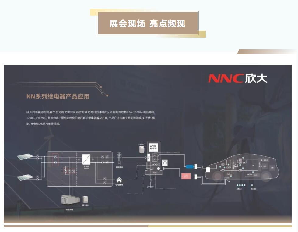 展會現場,欣大電氣最引人矚目的是NN系列新能源繼電器產品,具有提升能效、安全可靠的特點,耐受能力強,可廣泛應用于光伏、儲能、充電樁、電動汽車等新能源領域,吸引了眾多客戶駐足咨詢洽談。