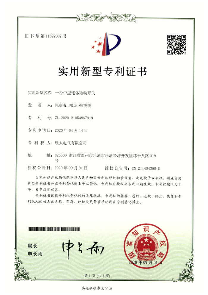 [專利證書]采用柔性動簧片的電磁繼電器(實用)