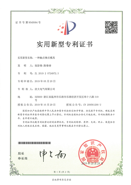 [專利證書]一種抗短路電流能力強的高壓直流繼電器(實用)