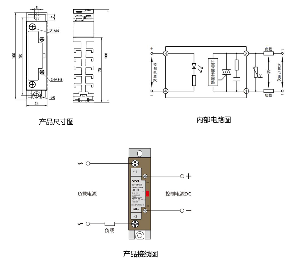 產品技術參數控制電壓 4-32VDC 控制電流 <20mA 接通電壓 4VDC 關斷電壓 1VDC 反向電壓 32VDC 負載電壓 40-440VAC 負載電流 10A、15A