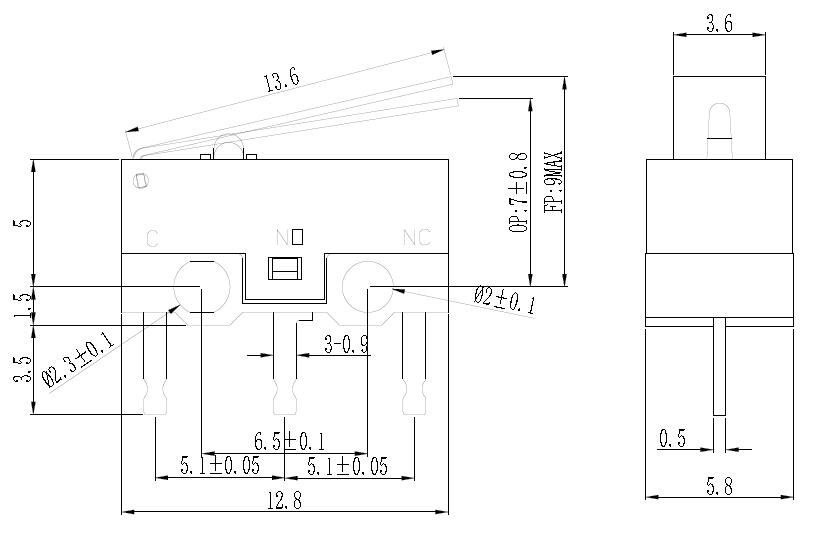 開關安裝時使用M2螺釘,使用平墊圈,彈性墊圈來緊固。此時