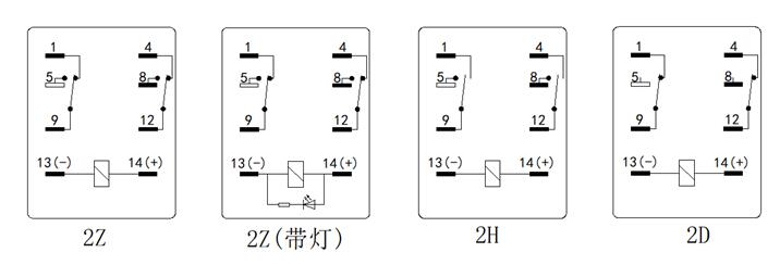 ⑤ 觸點形式:2H= 2組常開型 H;2D= 2組常閉 D; 2Z= 2組轉換型 Z