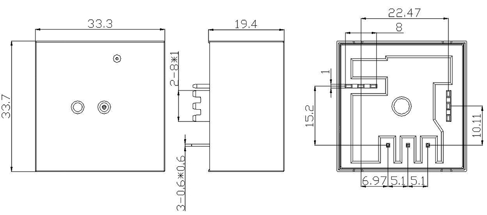 外形尺寸、安裝孔與線路圖(單位:mm)