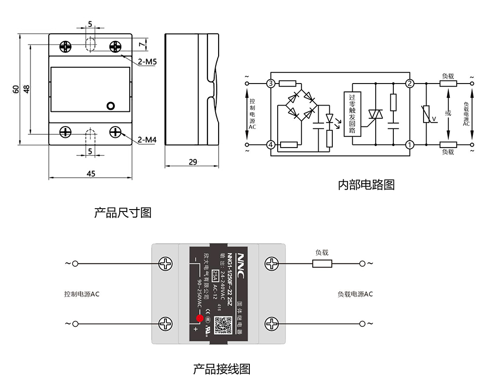 NNG 系列固體繼電器采用國際流行線路和器件制造的一種開關性能優良的新型無觸 點電子開關器件,符合GB/T 14048.5 的相關要求,其輸入端僅需要很小的控制電流,就 能夠接通和分斷大電流負載,能與TTL、HTL、CMOS 等集成電路較好的兼容,而輸出回路則采用可控硅或大功率晶體管接通和斷開負載電流,輸入與輸出之間采用光電耦合,通斷 時沒有任何可動接觸部件,具有結構強度高,耐沖擊,抗震性強,無火花,無噪音,工作可 靠性高,開關速度快,使用壽命長的特點。廣泛應用于信號燈,閃爍器,照明舞臺燈光控制 系統,儀器儀表,醫療器械,復印機,自動洗衣機,自動消防,保安系統,積極作為電網功 率因素補償的電力電容切換開關等自動化控制領域;另外在化工,煤礦等需要防爆防潮防塵 防腐蝕的惡劣環境及頻繁開關場合中大量使用,已成為繼電器家族(EMR)的理想更新換 代產品。產品分類