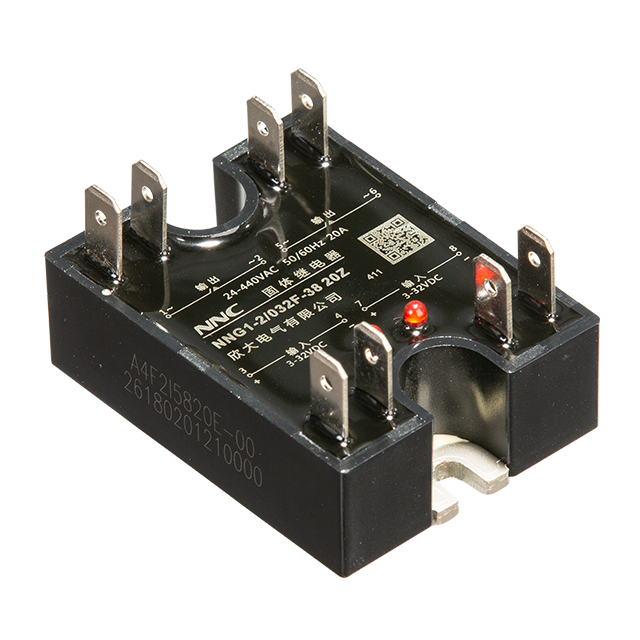 NNG 系列固體繼電器采用國際流行線路和器件制造的一種開關性能優良的新型無觸點電子開關器件,符合GB/T 14048.5 的相關要求,其輸入端僅需要很小的控制電流,就能夠接通和分斷大電流負載,能與TTL、HTL、CMOS 等集成電路較好的兼容,而輸出回路則采用可控硅或大功率晶體管接通和斷開負載電流,輸入與輸出之間采用光電耦合,通斷時沒有任何可動接觸部件,具有結構強度高,耐沖擊,抗震性強,無火花,無噪音,工作可靠性高,開關速度快,使用壽命長的特點。廣泛應用于信號燈,閃爍器,照明舞臺燈光控制系統,儀器儀表,醫療器械,復印機,自動洗衣機,自動消防,保安系統,積極作為電網功率因素補償的電力電容切換開關等自動化控制領域;另外在化工,煤礦等需要防爆防潮防塵防腐蝕的惡劣環境及頻繁開關場合中大量使用,已成為繼電器家族(EMR)的理想更新換代產品。