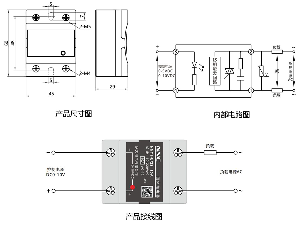NNT3-U 型系列固體調壓器是由可控硅開關電路,阻容移相電路,滯后電路,過壓吸 收電路以及模塊的形式,采用優質可靠的電子元器件,SMT 貼片工藝,阻燃工程塑料外殼, 環氧樹脂灌封,螺紋引出端接線。具有體積小,性能穩定,可靠性高,結構強度高,耐沖擊, 抗震性強,結構新穎,造型別致,使用快捷安全可靠。使用時僅需外接一只電位器,即可實 現交流電輸出功率調節,實現負載電壓從零伏到電網全電壓的無級可調。在許多場合中可以 代替笨重的接觸式調壓器。廣泛應用在石油化工儀器設備,食品機械,包裝機械,紡織機械, 舞臺燈光進行功率,電壓,溫度,亮度,速度等模擬量的調節,電焊、電鍍等各種阻性負載 或感性負載,是工業自動化控制、電源、電機驅動與調速等眾多行業更新換代的理想產品。