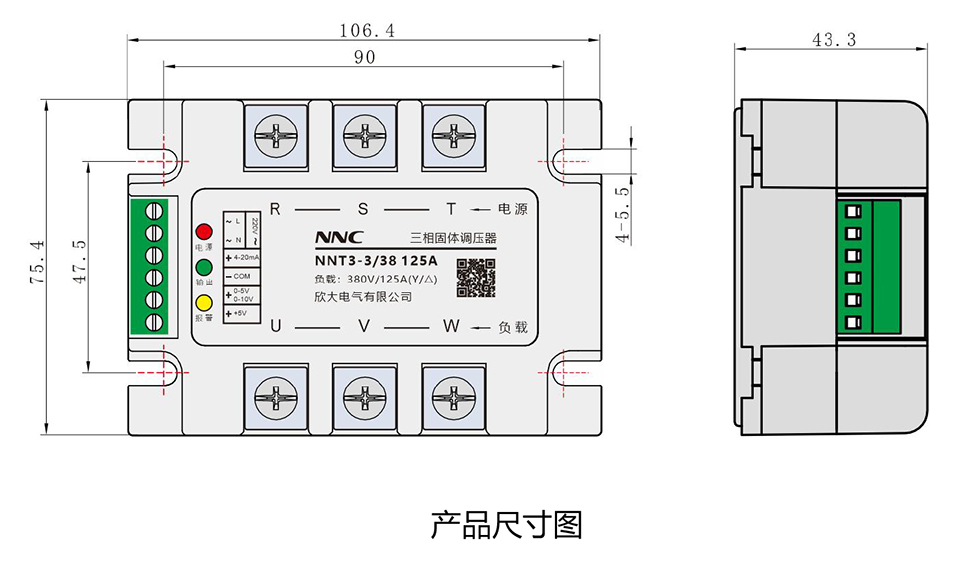 數介質耐壓 ≥2000V 絕緣電阻 >1000MΩ 冷卻方式 散熱器、強制風冷 外形尺寸 106.4×75.4×43.3mm 安裝尺寸