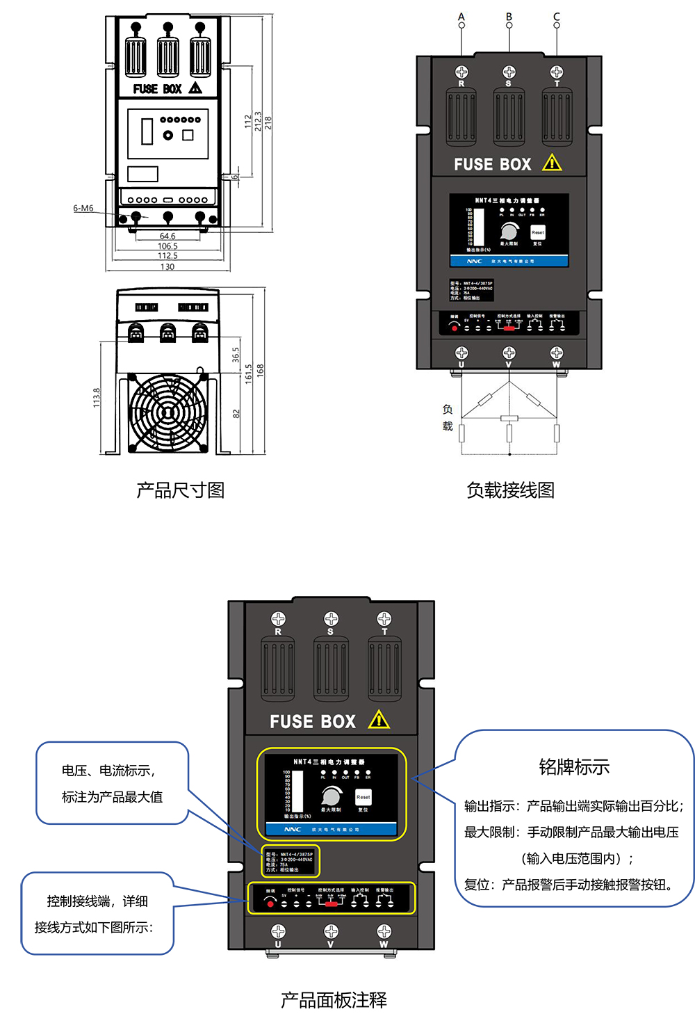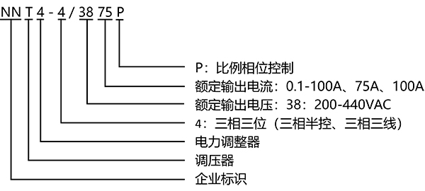 ?適用負載:三相三線半控型:定阻抗負載,遠紅外、IR 燈管、硅碳棒負載等不適型號說明