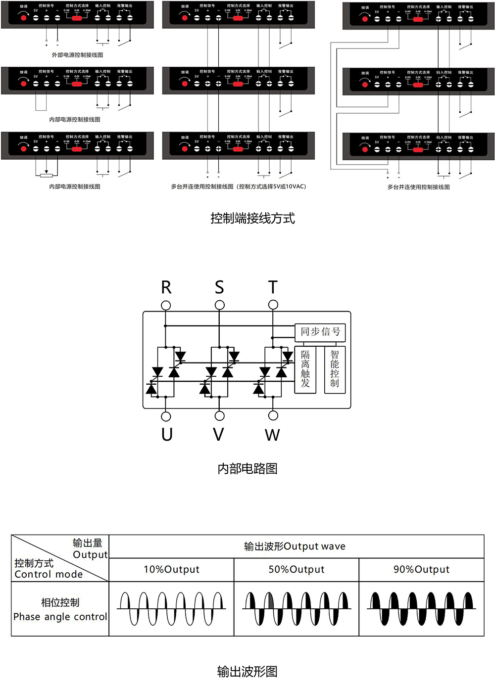 - 全隔離智能調壓模塊是采用大規模集成電路設計,內部集移相觸發電路、單向或雙向可 控硅,RC 阻容吸收回路及電源電路于一體,采用優質可靠的電子元器件,SMT 貼片工藝, 進口大功率晶閘管芯片組成,和低熱阻銅瓷鍵合(DCB)底板,控制端與強電主回路之間 為全隔離設計,內置同步變壓器或光電耦合器組成一體化結構,產品具有體積小,性能穩定, 可靠性高。產品集手動或自動調節全兼容多功能輸入控制模式,大大減小客戶選型難度。多 種方式調節輸出可控硅的觸發導通角以改變負載上的電壓,從而調節輸出功率,實現負載電 壓從零伏到電網全電壓的無級可調。廣泛應用于加熱設備、燈光照明、電機調速、變壓器一 次側、電焊、電鍍等各種阻性負載或感性負載,是工業自動化控制、電源、電機驅動與調速 等眾多行業更新換代的理想產品。