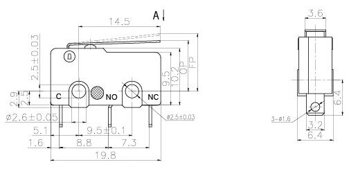 根據EN61058-1 ,該開關的最小絕緣層厚度應該為1.1mm,端子和安裝板之間的最小空間距離應該為1.6mm。