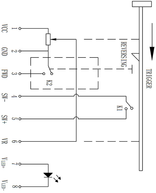 實現控制回路電源的導通與關斷 2 調速功能(調 提供隨行程變化對應的電阻值變化信號 3 換向功能(信號 提供正、反轉導通或關斷的開關信號(左、中