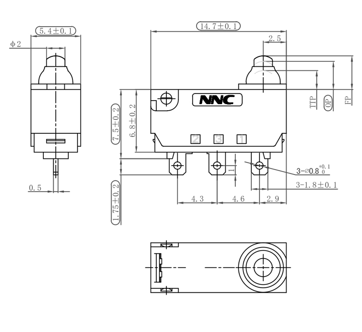 項目 OF 動作力 ≤130gf RF 釋放力 ≥13gf FP 自由位置 ≤4mm OP 動作位置 30.5±0.2mm TTP 極限位置 ≥5.1mm