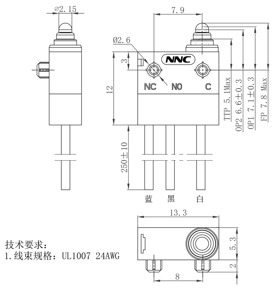 ④ 動作力(OF)最大:040:40±20gf;060:60±30gf;100:100±40gf;…:其它
