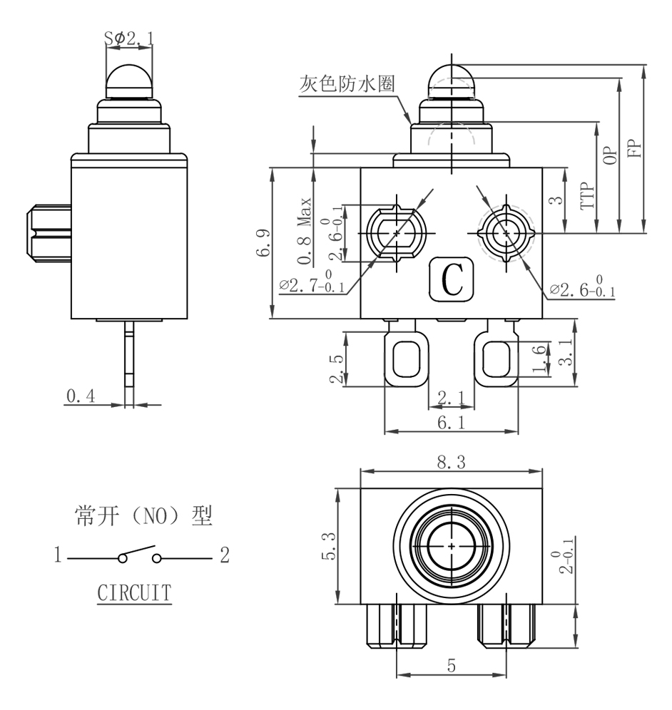 ④ 動作力(OF)最大:040:40±20gf; 060:60±30gf; 100:100±40gf; …:其它