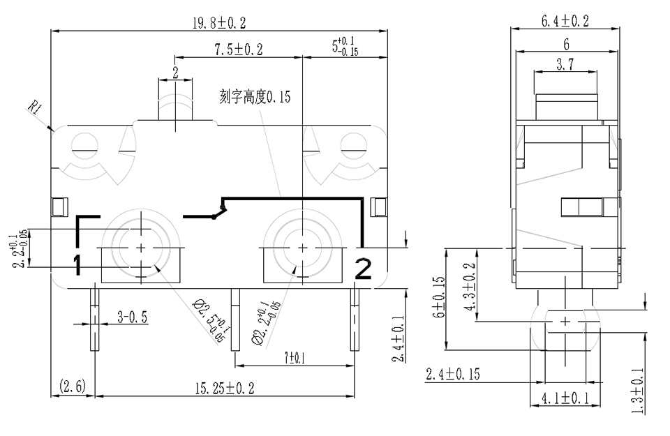NL-5-F3-LWOF 動 作 力 0.8±0.3 1.5±0.4 2.3±0.4 3.2±0.5 RF 釋 放 力 最小0.15N 最小0.35N 最小0.55N 最小0.55N PT 工作行程 最大0.6mm 最大0.6mm 最大0.6mm 最大0.6mm OT 超越行程 最小0.5mm 最小0.5mm 最小0.5mm 最小0.5mm MD 差動行程 最大0.2mm 最大0.2mm 最大0.2mm 最大0.2mm OP 動作位置 8.6±0.2mm