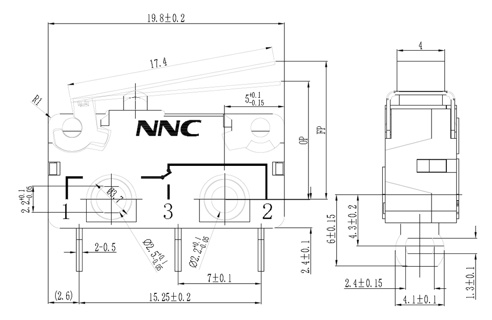 NL-5Z-F3-LWOF 動 作 力 最大0.5N 最大0.7N 最大0.9N 最大1.2N RF 釋 放 力 最小0.02N 最小0.06N 最小0.1N 最小0.1N PT 超越行程 最小1.0mm 最小1.0mm 最小1.0mm 最小1.0mm OT 差動行程 最大1.0mm 最大1.0mm 最大1.0mm 最大1.0mm MD 自由位置 最大12mm OP 動作位置 9.8±0.8mm