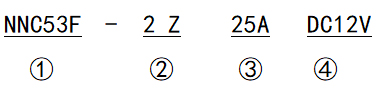 ② 觸點形式:2H= 2組常開型;2D= 2組常閉型;2Z= 2組轉換型③ 觸點負載:25A、30A