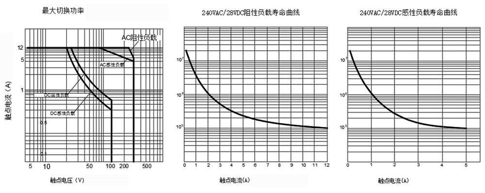 在沒有明確說明的情況下,所有欣大繼電器殼體上標識的負載電流均為阻性負載。在額定切換電壓下,電感負載的允許電流不應超過額定阻性負載的30%,電動機負載的允許電流不應超過額定阻性負載的20%,燈性負載的允許電流不應超過額定阻性負載的10%,容性負載的允許電流不應超過額定阻性負載的5%。為了產品實際使用的可靠性,在選型時建議選擇觸點負載電流值不超過產品額定負載下穩態電流值的60%~70%。