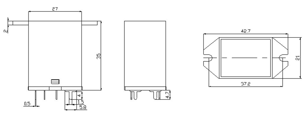 動作時間(額定電壓下) ≤20ms 釋放時間(額定電壓下) ≤20ms 絕緣電阻 1000MΩ 介質耐壓(漏電流1mA ) 線圈與觸點間 1500VAC(1分鐘)漏電流1mA. 斷開觸點間 1000VAC(1分鐘)漏電流1mA. 異極觸點間 1500VAC(1分鐘)漏電流1mA. 振動特性 誤動作 振幅 1mm,10~55Hz 振動耐久性 振幅 1mm,10~55Hz 沖擊特性 誤動作 最高加速度98m/s2持續時間11ms 耐沖擊 最高加速度980m/s2持續時間6ms 環境溫度 -40℃~85℃ 相對濕度 5%~ 85% RH 端子結構 PCB焊接式端子
