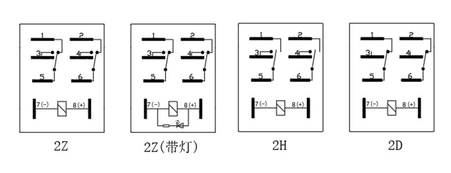 ⑤ 觸點形式:2H= 2組常開型;2D= 2組常閉; 2Z= 2組轉換型