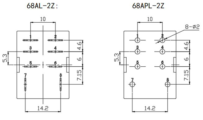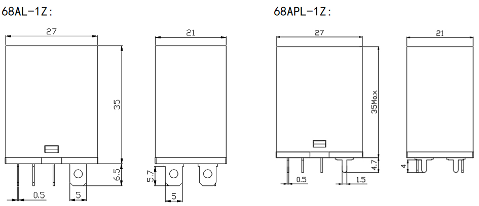 動作時間(額定電壓下) ≤20ms 釋放時間(額定電壓下) ≤20ms 絕緣電阻 1000MΩ 介質耐壓(漏電流1mA ) 線圈與觸點間 1500VAC(1分鐘)漏電流1mA. 斷開觸點間 1000VAC(1分鐘)漏電流1mA. 異極觸點間 1500VAC(1分鐘)漏電流1mA. 振動特性 誤動作 振幅 1mm,10~55Hz 振動耐久性 振幅 1mm,10~55Hz 沖擊特性 誤動作 最高加速度98m/s2持續時間11ms 耐沖擊 最高加速度980m/s2持續時間6ms 環境溫度 -40℃~85℃ 相對濕度 5%~ 85% RH 端子結構 PCB焊接式端子