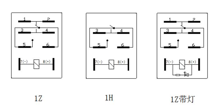⑤ 觸點形式:1H= 1組常開型H;1D= 1組常閉 D; 1Z= 1組轉換型Z