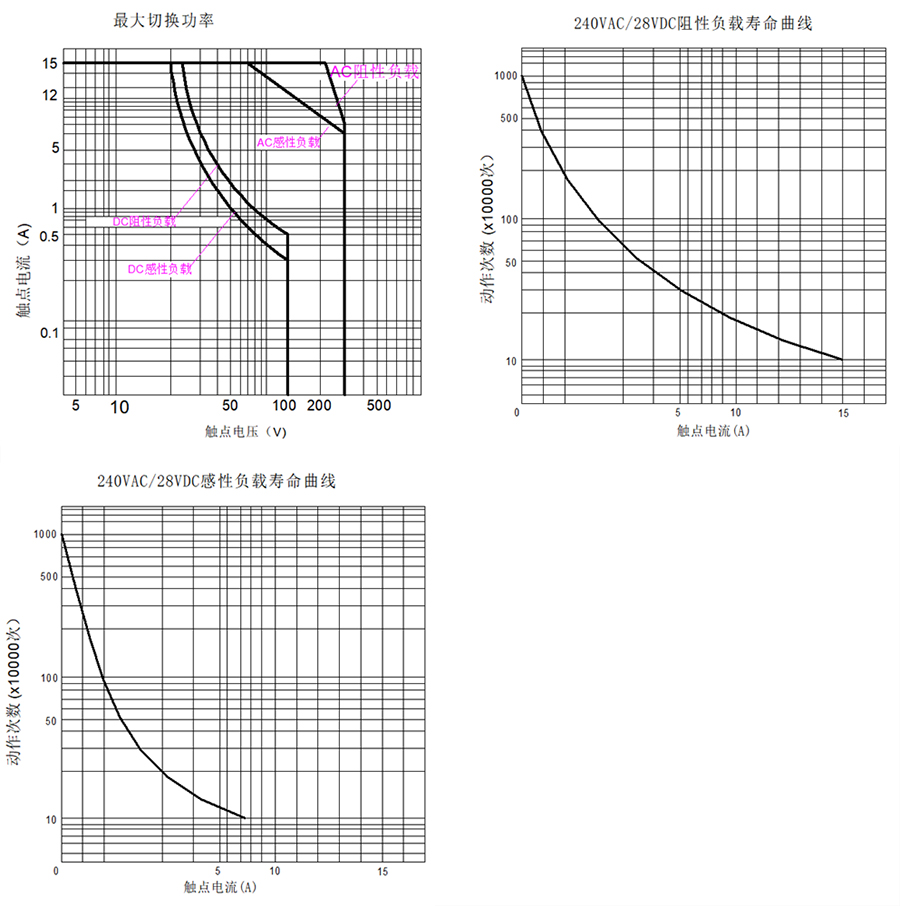 在沒有明確說明的情況下,所有欣大繼電器殼體上標識的負載電流均為阻性負載。在額定切換電壓下,電感負載的允許電流不應超過額定阻性負載的30%,電動機負載的允許電流不應超過額定阻性負載的20%,燈性負載的允許電流不應超過額定阻性負載的10%,容性負載的允許電流不應超過額定阻性負載的5%。為了產品實際使用的可靠性,在選型時建議選擇觸點負載電流值不超過產品額定負載下穩態電流值的60%~70%。
