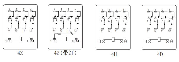 ⑤ 觸點形式:4H= 4組常開型 H;4D= 4組常閉 D; 4Z= 4組轉換型 Z