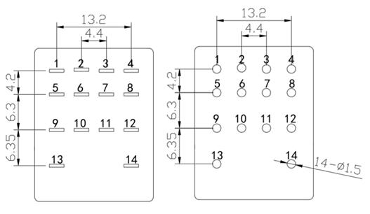 動作時間(額定電壓下) ≤20ms 釋放時間(額定電壓下) ≤20ms 絕緣電阻 1000MΩ ( 500VDC) 介質耐壓(漏電流1mA ) 線圈與觸點間 1500VAC(1分鐘)漏電流1mA. 斷開觸點間 1000VAC(1分鐘)漏電流1mA. 異極觸點間 1000VAC(1分鐘)漏電流1mA. 振動特性 誤動作 振幅 1mm,10~55Hz 振動耐久性 振幅 1mm,10~55Hz 沖擊特性 誤動作 最高加速度98m/s2持續時間11ms 耐沖擊 最高加速度980m/s2持續時間6ms 環境溫度 -40℃~85℃ 相對濕度 5%~ 85% RH 端子結構 PCB焊接式端子