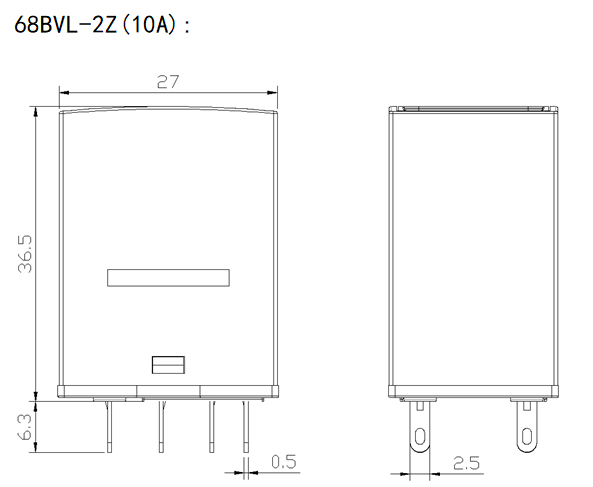 動作時間(額定電壓下) ≤20ms 釋放時間(額定電壓下) ≤20ms 絕緣電阻 1000MΩ ( 500VDC) 介質耐壓(漏電流1mA ) 線圈與觸點間 1500VAC(1分鐘)漏電流1mA. 斷開觸點間 1000VAC(1分鐘)漏電流1mA. 異極觸點間 1000VAC(1分鐘)漏電流1mA. 振動特性 誤動作 振幅 1mm,10~55Hz 振動耐久性 振幅 1mm,10~55Hz 沖擊特性 誤動作 最高加速度98m/s2持續時間11ms 耐沖擊 最高加速度980m/s2持續時間6ms 環境溫度 -40℃~85℃ 相對濕度 5%~ 85% RH 端子結構 PCB焊接式端子