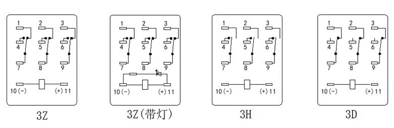 ⑤ 觸點形式:3H= 3組常開型 H;3D= 3組常閉 D; 3Z= 3組轉換型 Z