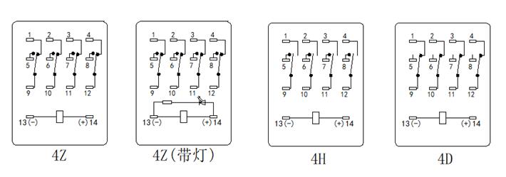 ⑤ 觸點形式:4H= 4組常開型 H;4D= 4組常閉 D; 4Z= 4組轉換型 Z