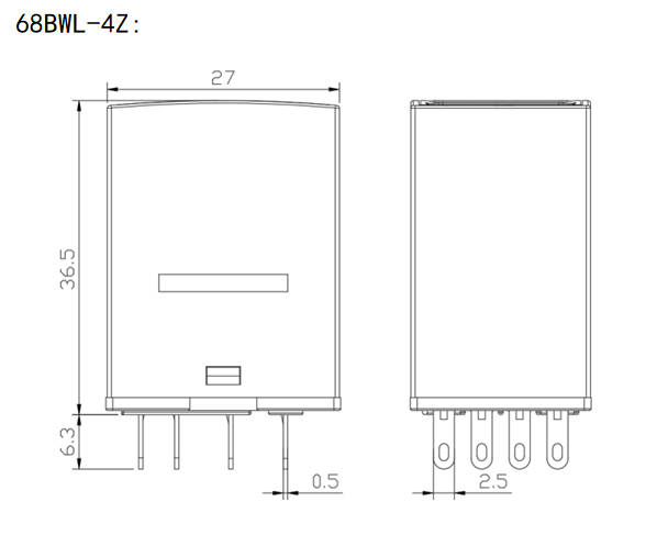 動作時間(額定電壓下) ≤20ms 釋放時間(額定電壓下) ≤20ms 絕緣電阻 1000MΩ ( 500VDC) 介質耐壓(漏電流1mA ) 線圈與觸點間 1500VAC(1分鐘)漏電流1mA. 斷開觸點間 1000VAC(1分鐘)漏電流1mA. 異極觸點間 1000VAC(1分鐘)漏電流1mA. 振動特性 誤動作 振幅 1mm,10~55Hz 振動耐久性 振幅 1mm,10~55Hz 沖擊特性 誤動作 最高加速度98m/s2持續時間11ms 耐沖擊 最高加速度980m/s2持續時間6ms 環境溫度 -40℃~85℃ 相對濕度 5%~ 85% RH 端子結構 PCB焊接式端子