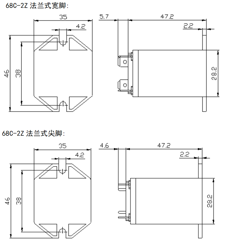 外形尺寸、安裝孔與線路圖(單位:mm)
