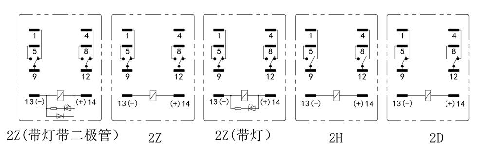 ⑤ 觸點形式:2H= 2組常開型 H; 2D= 2組常閉 D; 2Z= 2組轉換型 Z