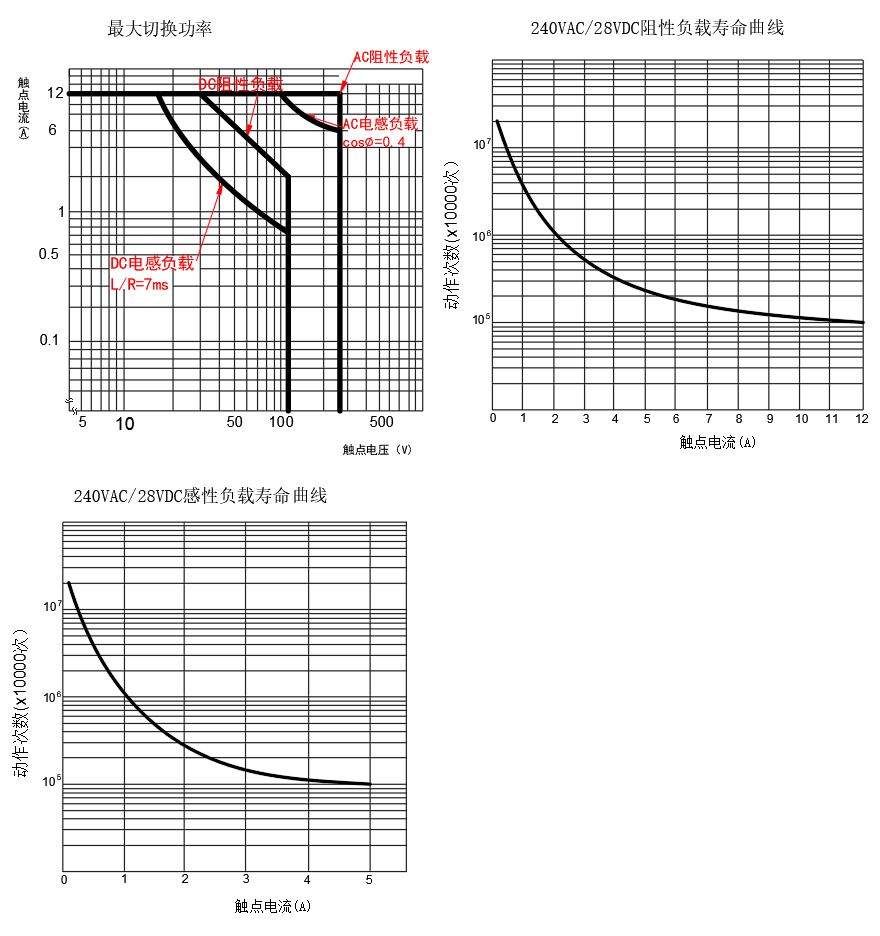 在沒有明確說明的情況下,所有欣大繼電器殼體上標識的負載電流均為阻性負載。在額定切換電壓下,電感負載的允許電流不應超過額定阻性負載的30%,電動機負載的允許電流不應超過額定阻性負載的20%,燈性負載的允許電流不應超過額定阻性負載的10%,容性負載的允許電流不應超過額定阻性負載的5%。為了產品實際使用的可靠性,在選型時建議選擇觸點負載電流值不超過產品額定負載下穩態電流值的60%~70%。