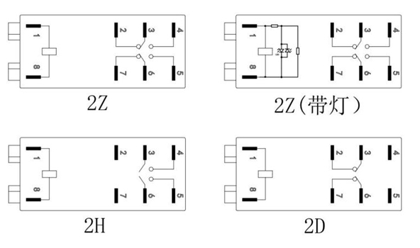 ④ 觸點形式:2H=2組常開型;2D=2組常閉;2Z=2組轉換型