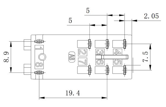 振動特性 誤動作 振幅 1mm,10~55Hz 振動耐久性 振幅 1mm,10~55Hz 沖擊特性 誤動作 最高加速度98m/s2持續時間11ms 耐沖擊 最高加速度980m/s2持續時間6ms 環境溫度 -40℃~85℃ 相對濕度 5%~ 85% RH 端子結構 插座式端子 保護結構 防塵型 重量 約20g 外形尺寸、安裝孔與線路圖(單位:mm)