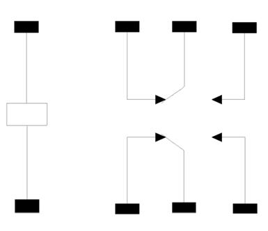 轉換型:中間是動觸點,線圈不通電時,動觸點和其中一個靜觸點斷開和另一個閉合,線圈通電后,動觸點就移動,使原來斷開的成閉合狀態,原來閉合的成斷開狀態,達到轉換的目的。