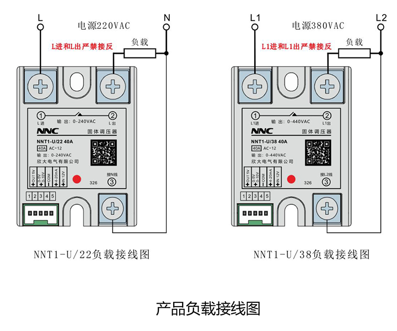 ① 安裝時請務必在電源側加裝aR 型快速熔斷器,空氣開關等保護,以防止短路,造成產品永久性失效。選取熔斷器電流等級的原則為略大于負載電流。阻性負載和感性負載宜用aR 型快速熔斷器,電動機,電力補償電容器類負載宜用空氣開關保護。