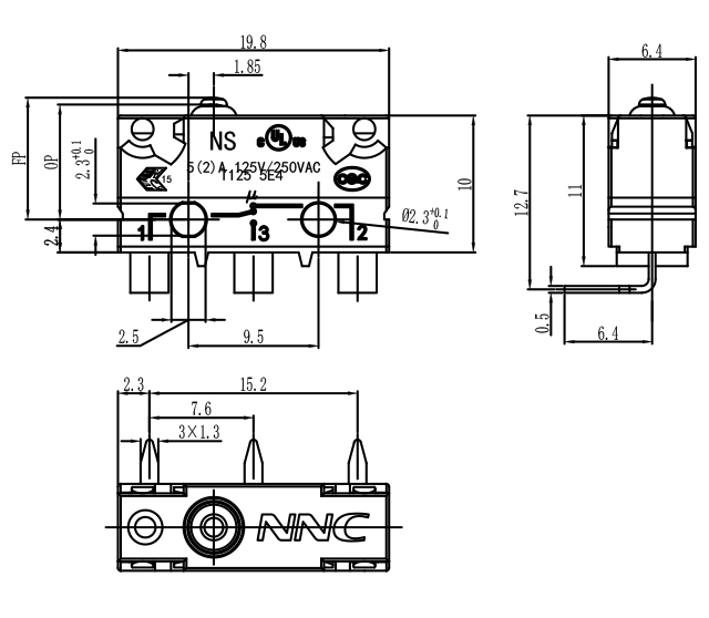 安裝孔:5: ?2.5 ; 3: ?2.3