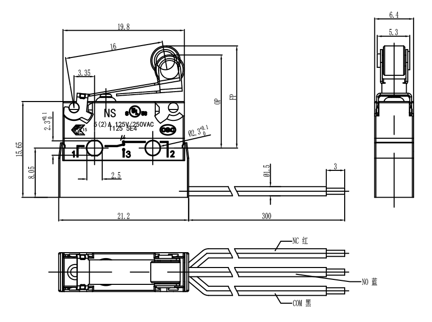 安裝孔:5: ?2.5 ; 3: ?2.3